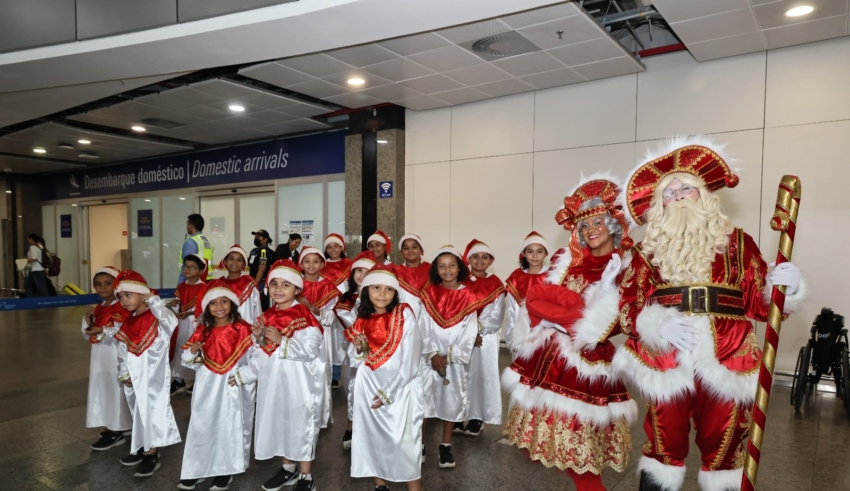 Como parte das celebrações do Ceará Natal de Luz 2025, o Coral da Luz realiza 5 apresentações especiais no Aeroporto Internacional Pinto Martins, encantando viajantes na área de desembarque com vozes infantis e canções natalinas. A primeira apresentação aconteceu nesta segunda-feira, dia 8 de dezembro, e encantou funcionários e passageiros que chegavam ou partiam do terminal aeroportuário. As apresentações seguem acontecendo nos dias 10, 12, 15 e 19 de dezembro, de 13h às 14h.
