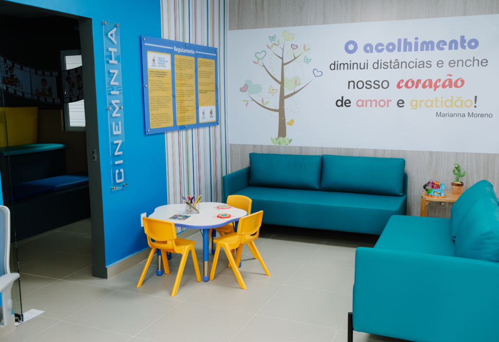 O ambiente conta com recepção, sala de estar, área de descanso, um espaço de cineminha, mesa de artes para atividades lúdicas e dois banheiros adaptados. As atividades no Espaço da Família iniciam no dia 24 de setembro. O local tem capacidade para atender 25 pessoas simultaneamente, promovendo repouso e mais acolhimento para o núcleo familiar que enfrenta esse momento delicado.