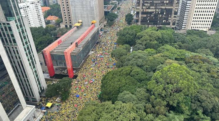 Apoiadores do ex-presidente Jair Bolsonaro se reuniram na tarde deste domingo (25) na Avenida Paulista, em São Paulo. Vestindo camisetas amarelas, portando bandeiras do Brasil e de Israel, eles chegaram ao encontro em ônibus com placas do interior de São Paulo e de outros estados.