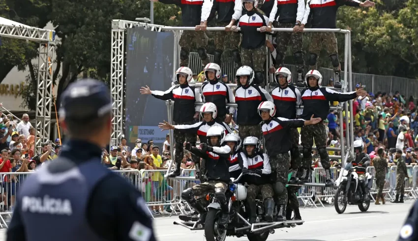 Para o desfile de 7 de Setembro, o público poderá acessar as arquibancadas na Esplanada dos Ministérios a partir das 6h30, com pontos de revista instalados. Estão proibidos itens como armas, objetos cortantes, substâncias inflamáveis, recipientes de vidro, fogos de artifício, mochilas de grande porte, barracas e drones sem autorização.