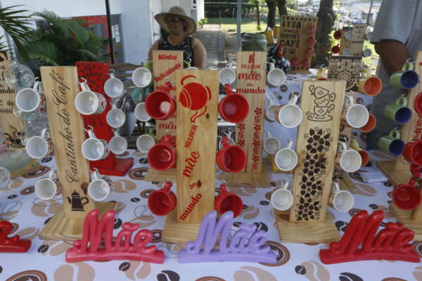 E para as mães que apreciam artesanato, há peças de crochê, bordado, renda de bilro e fuxico, além de bijuterias, bonecas de pano, produtos em madeira, cerâmica e barro, itens de brechó e outros produtos artesanais.