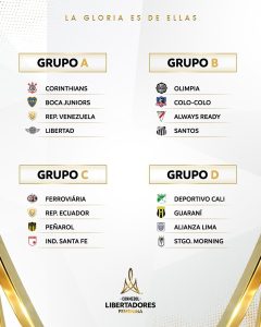 As Brabas do Timão são as cabeças de chave do Grupo A, que também conta com a participação de Boca Juniors (Argentina), Libertad (Paraguai) e um representante da Venezuela ainda a ser definido. Já as Sereias da Vila aparecem no Grupo B, que é completado por Olímpia (Paraguai), Colo-Colo (Chile) e Always Ready (Bolívia).