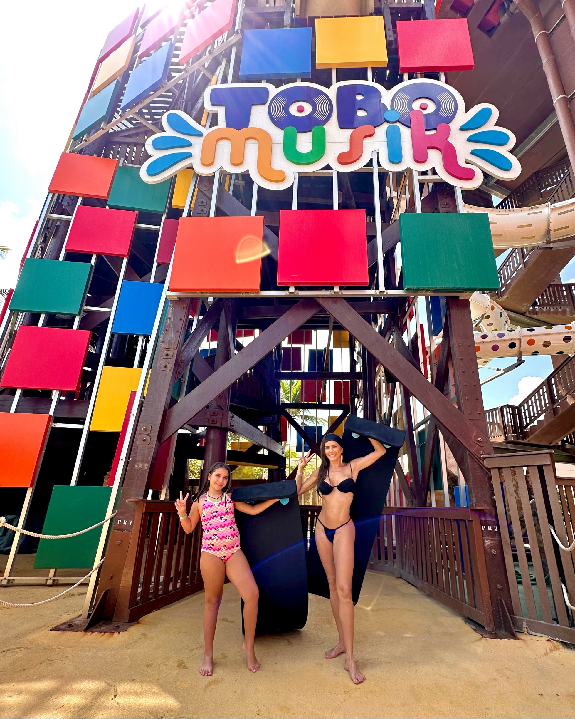 Mãe e filha estão com amigos curtindo as atrações do Aqua Park, eleito o melhor parque aquático das Américas (TripAdvisor 2024), e aproveitaram para conhecer a nova atração, A Volta da Moreia, inaugurada este ano.