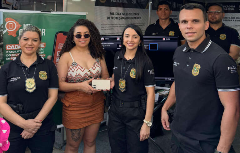 Com ações ininterruptas de combate ao crime contra o patrimônio, a PCCE segue com um trabalho de inteligência para localizar, identificar e prender indivíduos envolvidos nesse tipo de crime. Desde que o programa foi lançado, a instituição vem desmantelando esse esquema criminoso que, em sua maioria, subtraem aparelhos celulares para a venda ilegal. Exemplo disso está a devolução de mais um aparelho celular, que aconteceu durante ações da PCCE no evento regional. Com pouco mais de dois anos, a vítima pode receber das mãos dos agentes o aparelho em perfeito estado, que foi localizado em Fortaleza.
