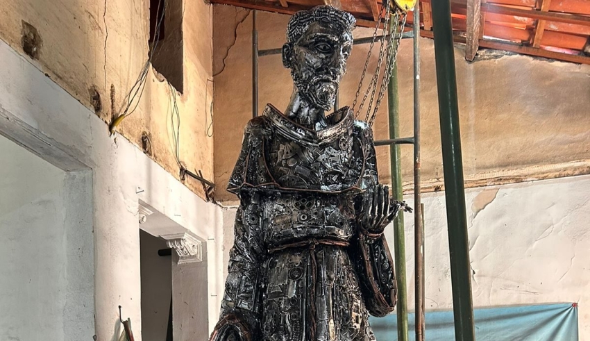 A escultura de São Francisco de Assis, produzida pelo escultor e artesão Edismar Arruda, será inaugurada nesta sexta-feira (25), às 17h45, em frente à Farmácia Pague Menos da Praia de Iracema, próximo ao Aterro do Ideal.