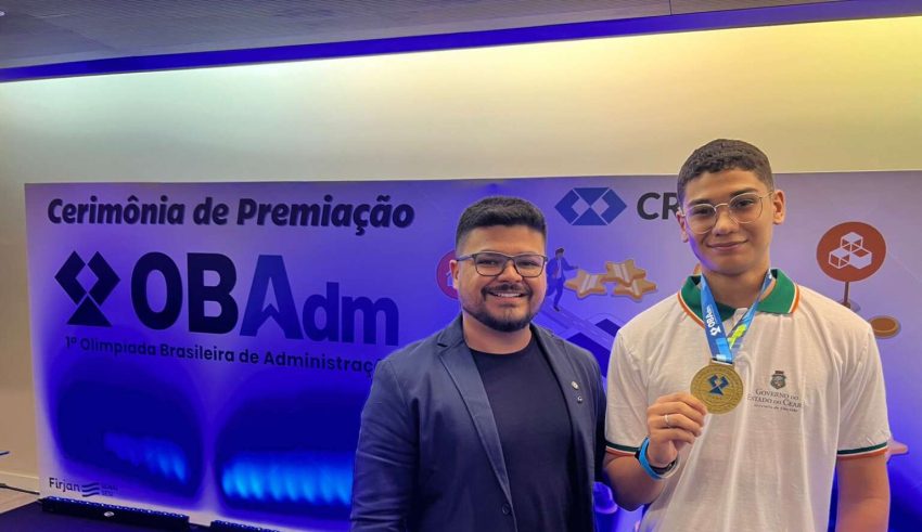 Paulo do Prado Costa Júnior, de 17 anos, estudante da 3ª série do Ensino Médio técnico em Administração na Escola Estadual de Educação Profissional (EEEP) Maria Môsa da Silva, localizada no município de Ocara, foi medalhista de ouro na Olimpíada Brasileira de Administração (OBAdm). A cerimônia de premiação ocorreu na última sexta-feira (30), no Rio de Janeiro-RJ. Paulo viajou acompanhado do professor Wagner Chagas, que atua como coordenador do curso na unidade de ensino.