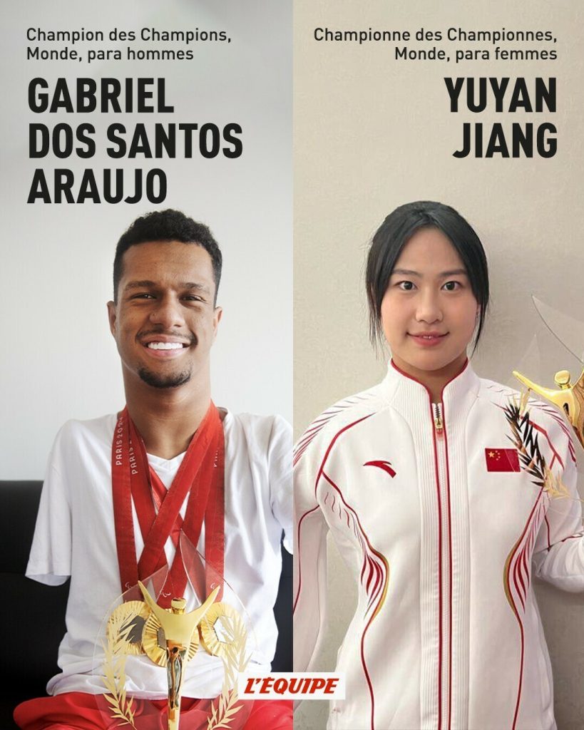 Esta foi a primeira vez na história que a premiação, criada em 1946, também avaliou o desempenho de altetas paralímpicos. Três vezes campeão nos Jogos de Paris no nado costas da classe S2 (200 metros, 50m e 100m ), Gabriezinho foi eleito o melhor atleta paralímpico do ano. Entre as paratletas, o troféu ficou com a chinesa Jiang.