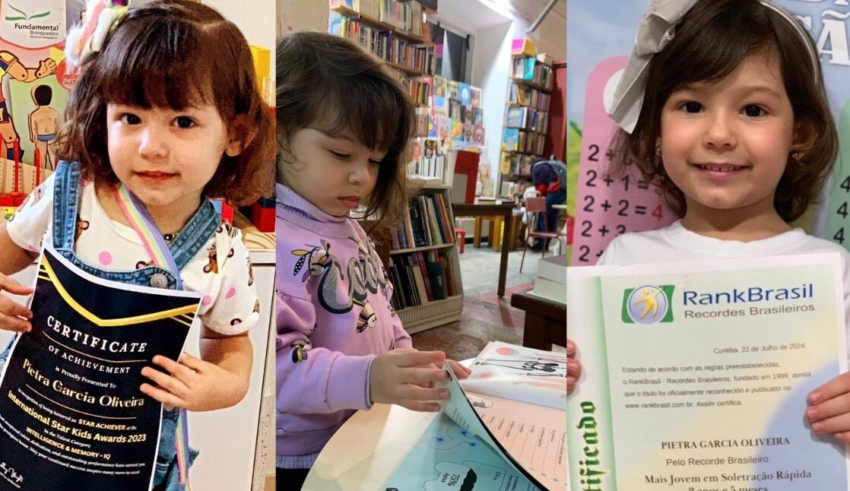 Pietra Garcia, de apenas 4 anos, chamou atenção do mundo acadêmico ao conquistar medalha de bronze na Olimpíada Internacional Smeta, competição que estimula o raciocínio lógico e a matemática entre crianças e jovens de diversos países.