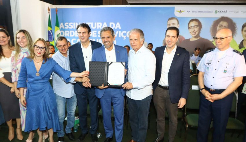 Seguindo com o compromisso de investir em educação para melhorar a vida dos cearenses, o Governo do Ceará deu mais um passo para a implantação do Instituto de Ciência e Tecnologia da Aeronáutica (ITA) em Fortaleza. O governador Elmano de Freitas assinou, nesta quinta-feira (19), junto ao ministro da Educação, Camilo Santana, ao ministro da Defesa, José Múcio, e ao Comandante da Aeronáutica, tenente-brigadeiro do Ar Marcelo Damasceno, e à presidente do Fundo Nacional de Desenvolvimento da Educação (FNDE), Fernanda Pacobahyba, a ordem de serviço para o início das obras da primeira fase de implantação do campus do ITA no Ceará.