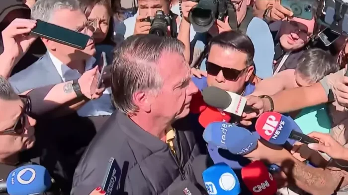 Logo após ter a tornozeleira eletrônica instalada, na Secretaria de Administração Penitenciária do Distrito Federal, Bolsonaro parou para falar com jornalistas e disse que o objetivo da medida imposta por Moraes seria promover sua “suprema humilhação”. Ele negou qualquer plano de sair do país para fugir de eventual condenação.
