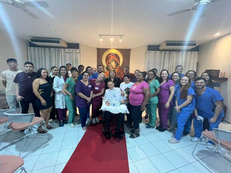 O diagnóstico veio em 2024: Esclerose Lateral Amiotrófica (ELA). “Comecei a perder os movimentos, passei por hospitais até ser transferido para a Casa de Cuidados, onde estou atualmente”, explica o paciente. “Um dia, (o Serviço Social da CCC) perguntou o que eu tinha vontade de fazer aqui que ainda não tinha feito, então falei para a assistente social que tinha vontade de casar”, conta.