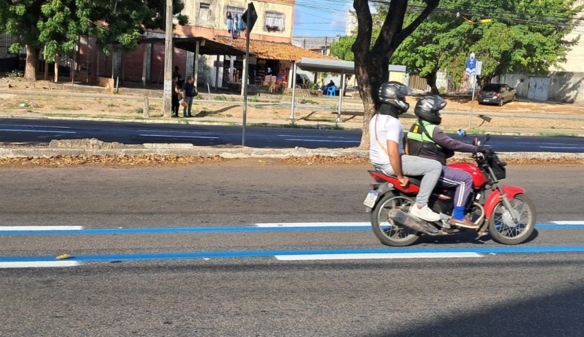 A Prefeitura de Fortaleza iniciou, neste fim de semana, a implantação da segunda Faixa Azul para motocicletas da cidade. A infraestrutura, que deve ter a sinalização concluída até o fim de janeiro de 2026, funcionará em caráter experimental no trecho entre a Av. Juscelino Kubitschek e a Av. Godofredo Maciel, conforme autorização concedida pelo Ministério dos Transportes, por meio da Secretaria Nacional de Trânsito (Senatran).