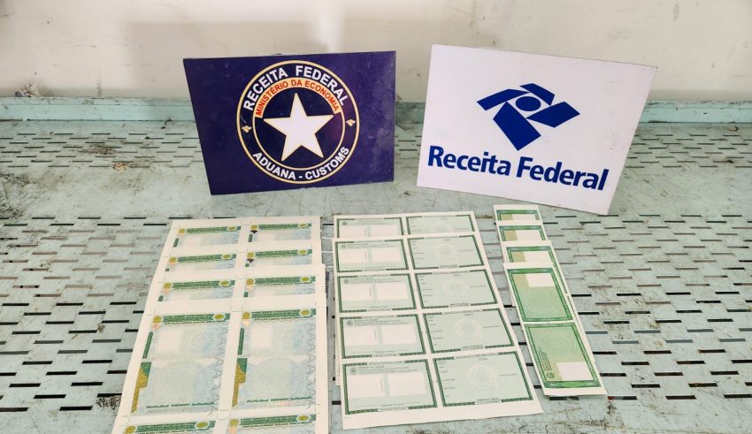 Conforme a Receita, o material tinha declaração falsa de conteúdo; os documentos estavam em branco, sem informação cadastral.