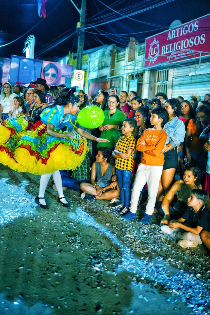 Inspirada na arte do picadeiro e levando para as ruas a magia do circo, a quadrilha junina Caipiras Aloprados, do distrito de Aribicé, encantou o público e jurados e venceu o Festival de Quadrilhas Juninas Folia Sertaneja 2024.